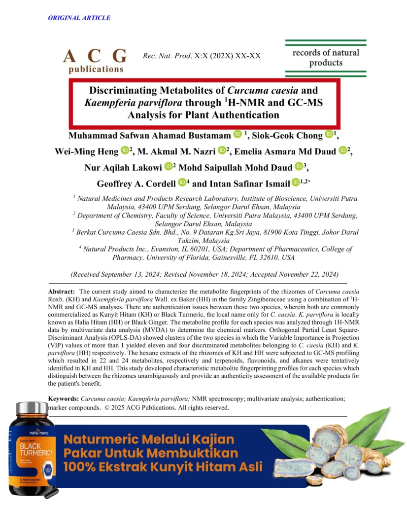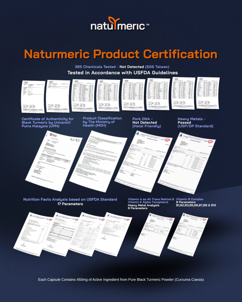 Produk Naturmeric yang sedang kami bangunkan ini telah disahkan 100 peratus mengandungi kunyit hitam tulen oleh Universiti Putra Malaysia.