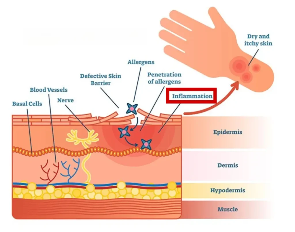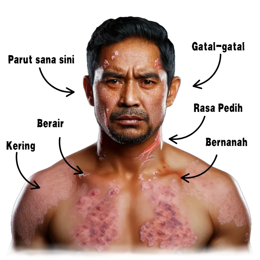 👉 Akibatnya, tubuh sendiri mula “menyerang” lapisan kulit — menyebabkan keradangan, gatal melampau, dan luka berpanjangan.