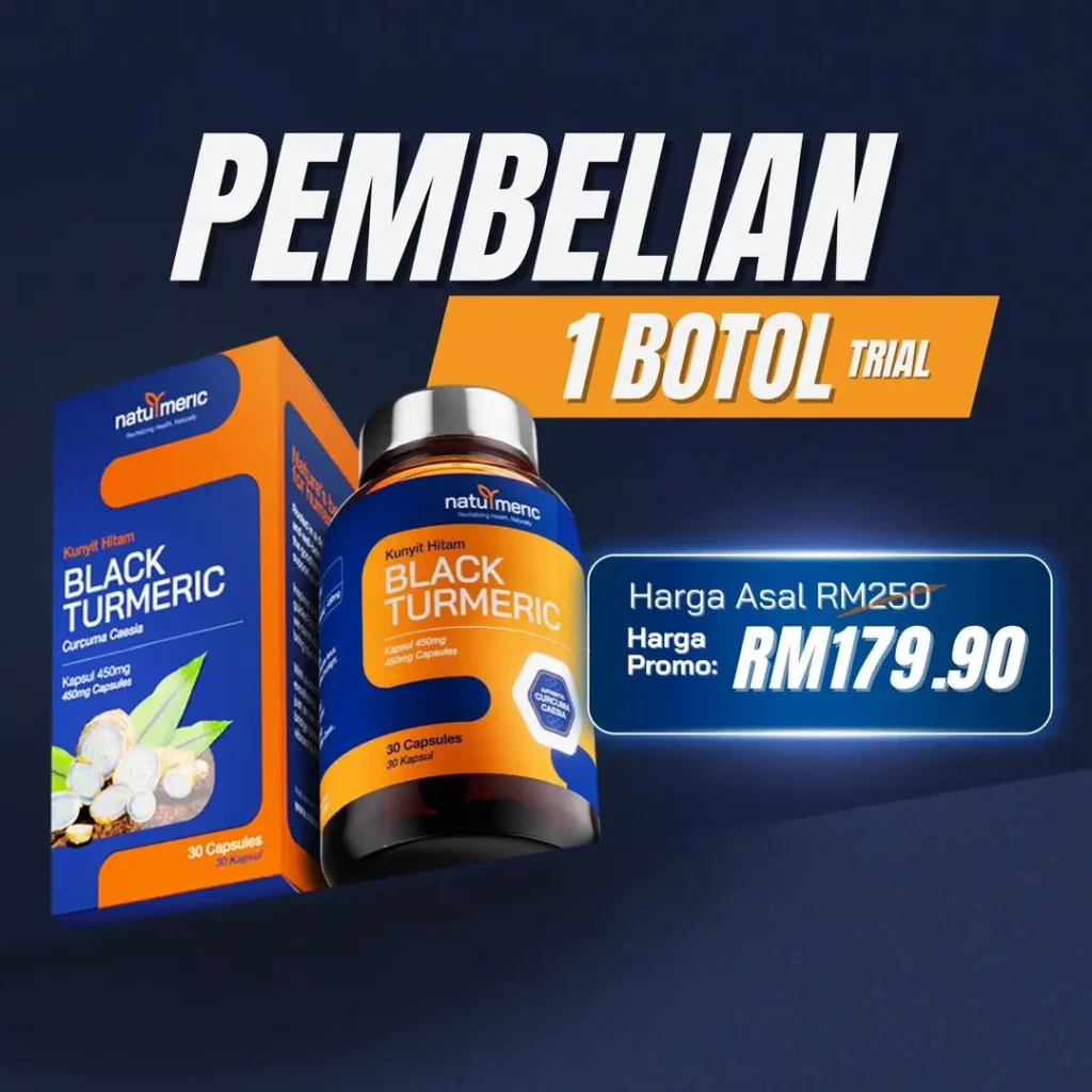 Naturmeric bukan sekadar suplemen biasa. Ia menggunakan 100% ekstrak Kunyit Hitam Asli — herba luar biasa yang terbukti mempunyai kuasa anti-radang, memperbaiki imun sistem, dan memulihkan kulit.