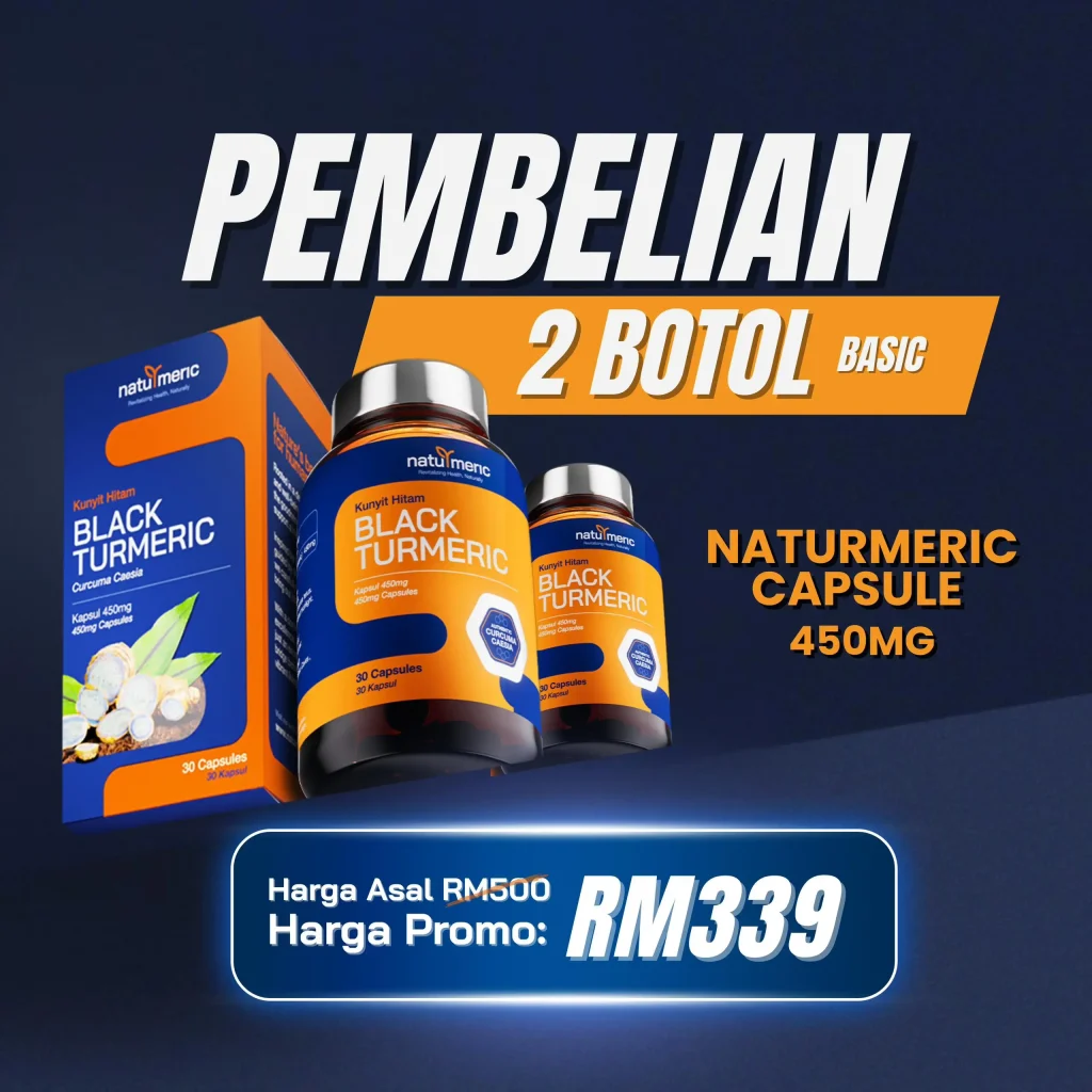 NATURMERIC adalah suplemen kesihatan berasaskan ekstrak Black Turmeric (Kunyit Hitam Asli yang telah disahkan oleh University Putra Malaysia,UPM), Herba yang jarang ditemui dan bernilai terlalu tinggi yang kaya dengan curcuminoid dan antioksidan untuk merawat keradangan, sakit sendi, dan pelbagai masalah kesihatan secara semula jadi.