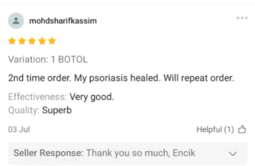 Disclaimer: Apa yang kami nyatakan di web ini adalah benar dan tepat mengikut fakta semasa dan dari ulasan pengguna sebenar. Pengguna dinasihatkan menggunakan produk ini seperti arahan pada produk. Produk ini akan memberi kesan terbaik sekiranya pengguna mengamalkan dengan cara betul berdasarkan banyak testimoni yang diperolehi. Kita berikhtiar, Tuhan yang menyembuhkan