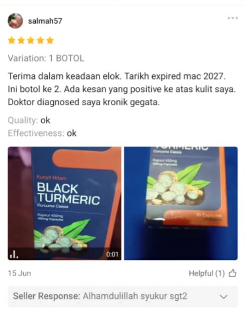 “Kajian juga menunjukkan bahawa Black turmeric mempunyai curcumin yang berlipat kali ganda jika dibandingkan dengan regular turmeric. Curcumin sangat terkenal secara saintifik dengan sifat anti-radang, punca utama kepada sakit kronik kepada kesihatan manusia.”
