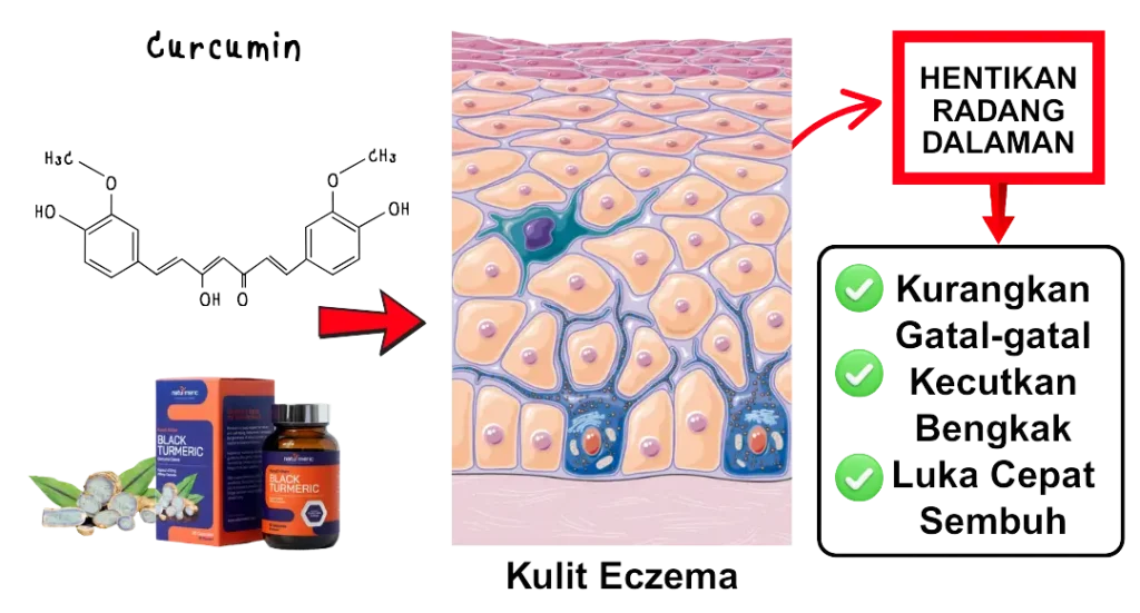 ✅ Antioksidan semulajadi dalam Black Turmeric seperti ar-turmerone dan zingiberene membantu membaiki kerosakan sel kulit yang rosak akibat serangan eczema berulang.